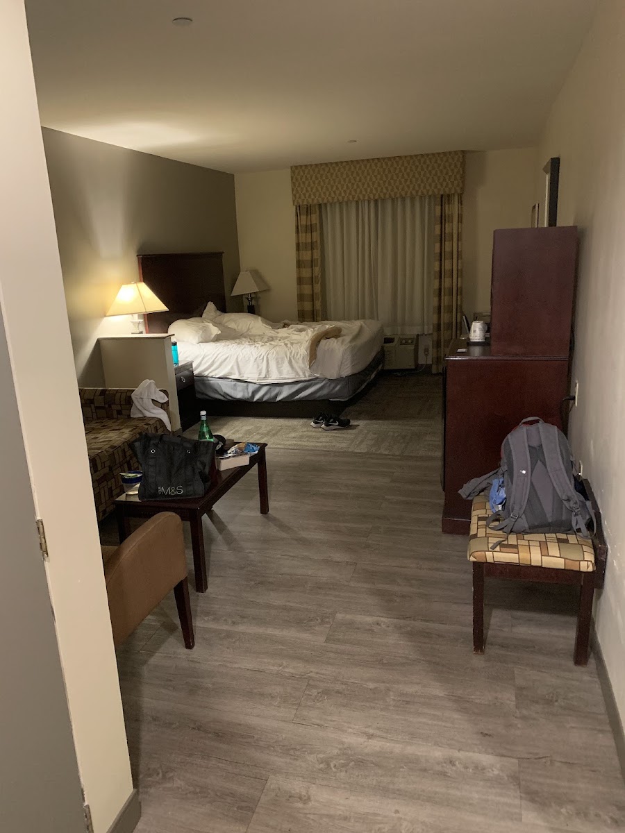 The send most amazing place to stay! The room was huge and perfect for our family of 5. And the beds were super comfortable. The place was clean and pool according to my stepsons was warm and great! Breakfast was good too. The lady kept refilling so much food I was surprised. Most hotels just let everything empty. The elevator was pretty cool with its view of outside while it moved. Our room we was able to view the beautiful river. The only thing inconvenient for us all was the outlets. There wasn't enough and not close to the bed. We made it work out but there should be more in the rooms. Overall this was best first trip for my stepsons to NJ my home state and I'm very happy with the outcome!